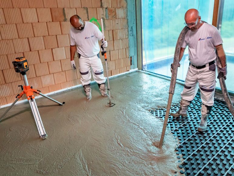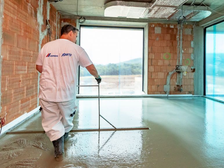Uložení cementového litého potěru v rodinné domě v Ústí nad Labem prováděla realizační firma ze sítě certifikovaných společností - CEMEX Xperts. Cementový litý potěr byl ukládán na podlahové topení.